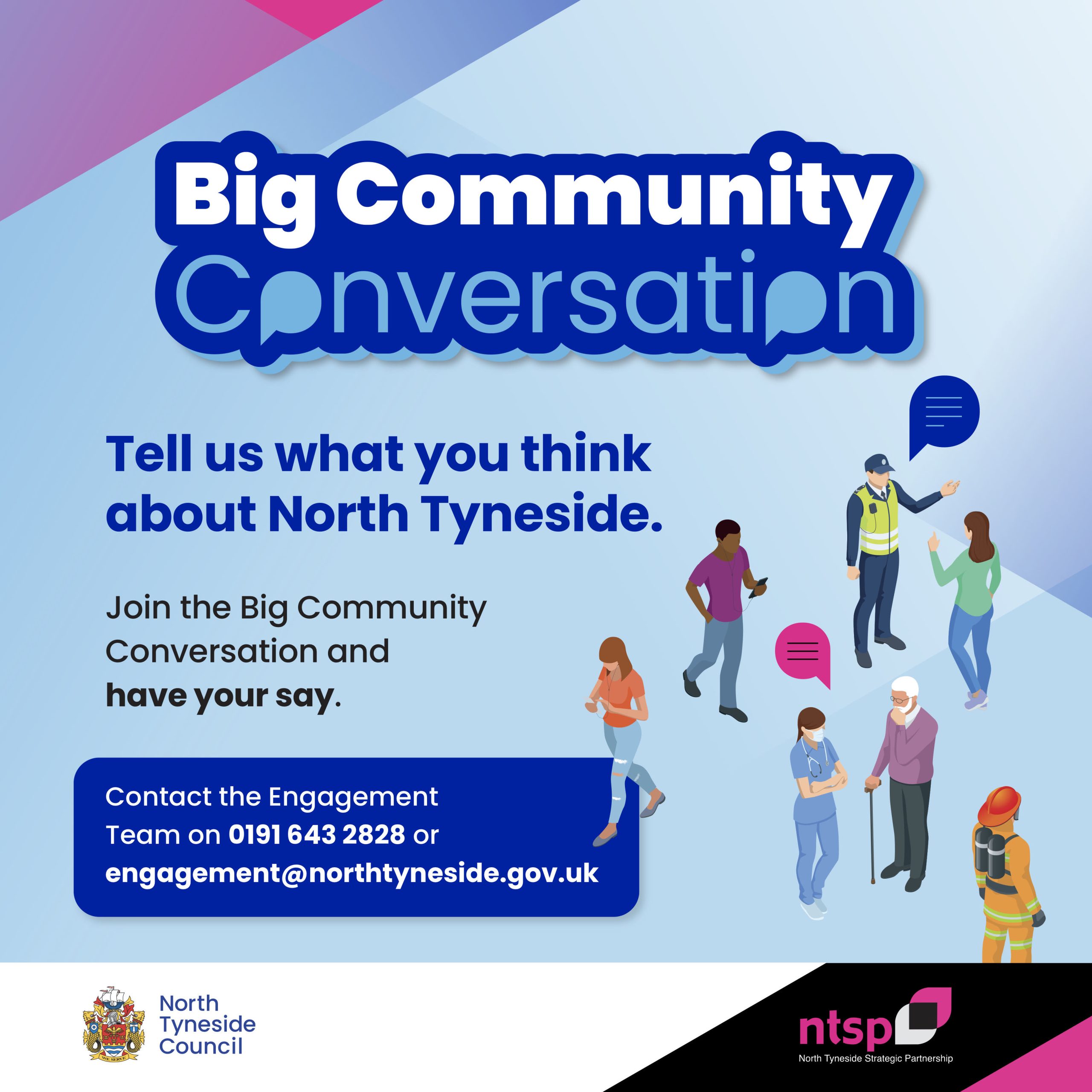 Have your say in the Big Community Conversation 2025 North Tyneside Council and its partners want to hear from you. Whether you live in, work in, or visit the Borough, your voice matters. Tell us what you love about North Tyneside, what you’d improve, and ask a question to local