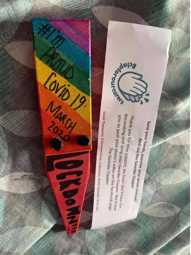 The Geordie Clapper is a wooden device that makes a noise when shook made by Dave Thompson. Initially designed because clapping on a Thursday night began to become quite painful after a previous hand operation; the Geordie Clapper quickly became popular as Dave and his wife Sue gifted them to neighbours, family and friends to use. North Tyneside Carers’ Centre learnt about the Geordie clappers thanks to volunteer Sue Thompson. Both Sue and her husband Dave are carers, as well as Sue volunteering for the service.